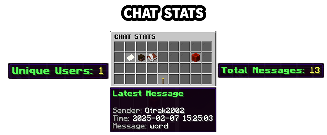 - The Chat Stats GUI tracks key chat statistics, including: